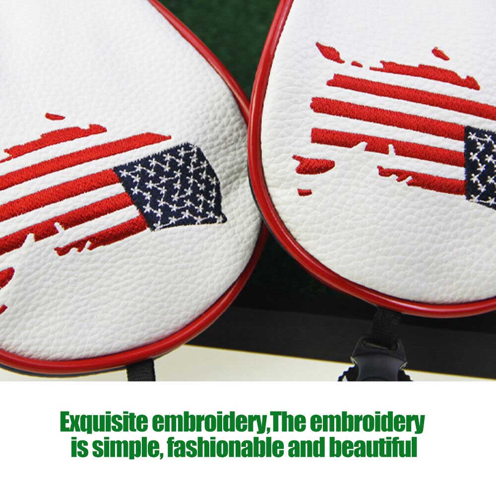 The head covers feature a bold and eye-catching USA flag design that is sure to turn heads on the course. The high-quality leather material not only looks great, but also provides superior protection for your clubs against scratches, dings, and other damage.
