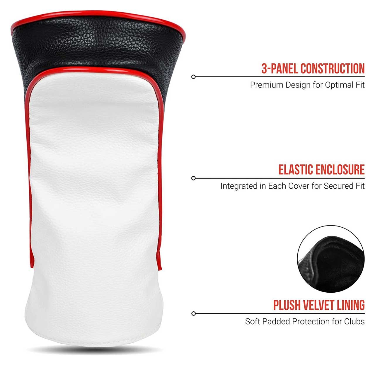 Perfect Fit & Secure Protection – Each headcover features 3-panel leather construction, plush velvet lining & integrated elastic enclosure that ensures a snug fit for your Fairway Woods!