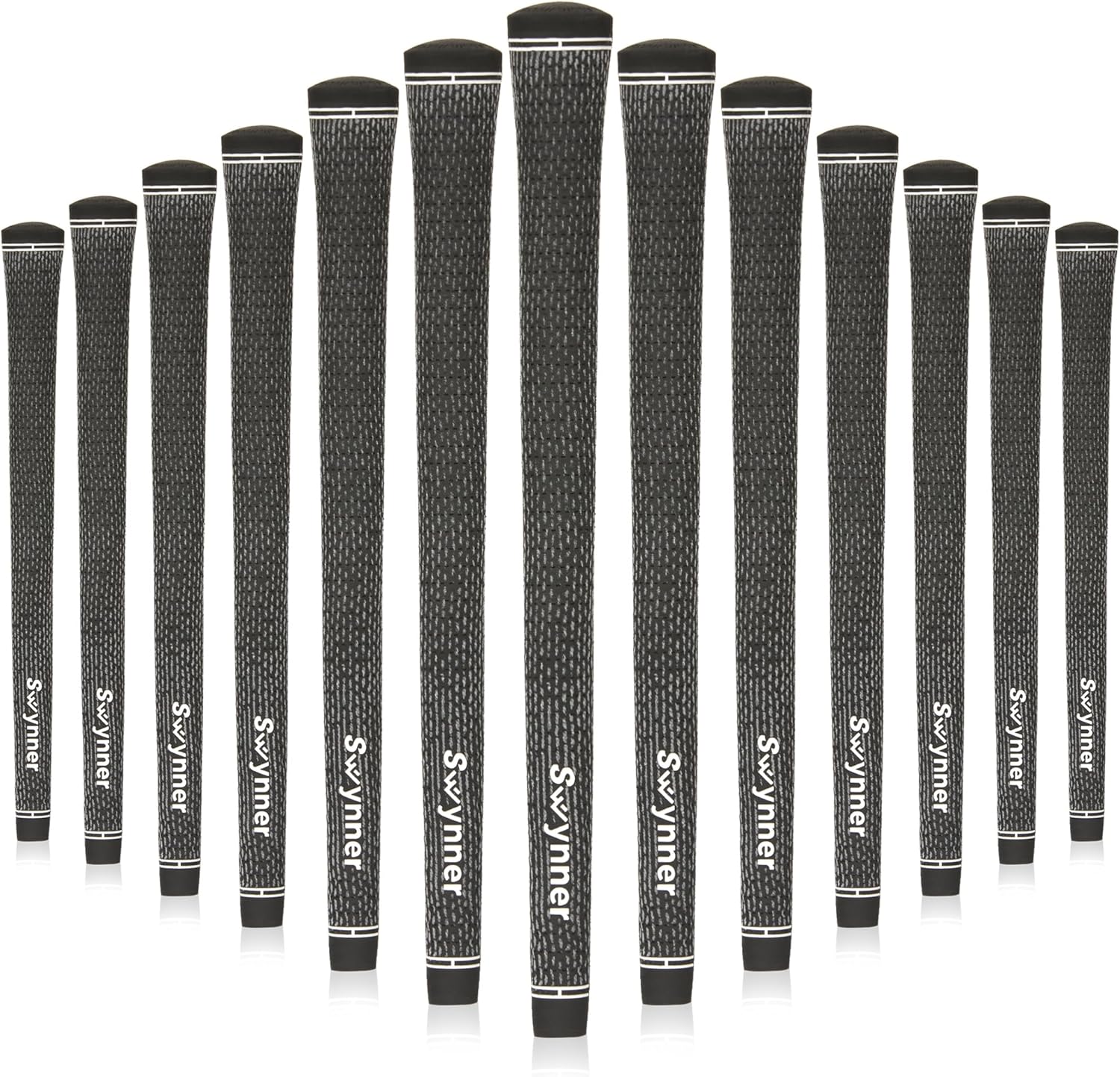 Swynner Classic Velvet Cord Swing Golf Grips - Set of 13 Standard Golf Club Grips - Black Velvet Cord - 60R Core Size - 10.75 Inch Length - Compatible with Golf Pride Tour Velvet Clubs