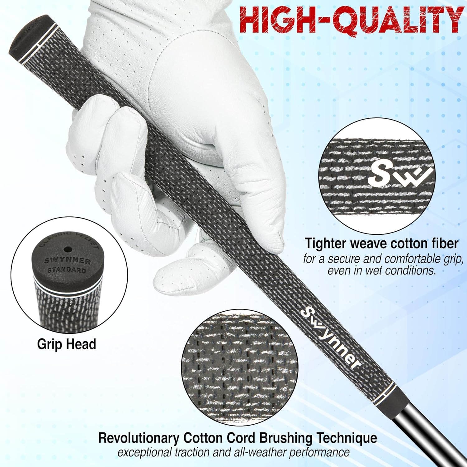 - PREMIUM QUALITY CONSTRUCTION - the Swynner Design Classic Velvet Cord Swing Golf Grips are meticulously crafted from a combination of high-quality rubber and cord materials, ensuring durability and longevity. These golf club grips are designed to withstand the rigors of regular use, providing consistent performance season after season. The durable construction guarantees that you can rely on these putter grips for a long-lasting, superior golfing experience